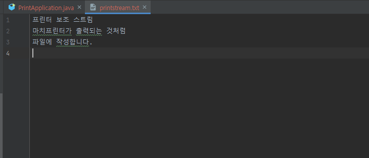 보조스트림 적용은 new 보조스트림 생성자안에 매개변수로 기본스트림을 넣어주는 형태입니다.