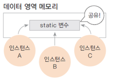 즉, static 변수는 인스턴스에서 공통적으로 사용하는 영역임을 알 수 있다.