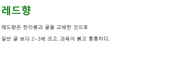 /* 색깔 지정 : red, (#16진수 6자리, 색상표 표기) */