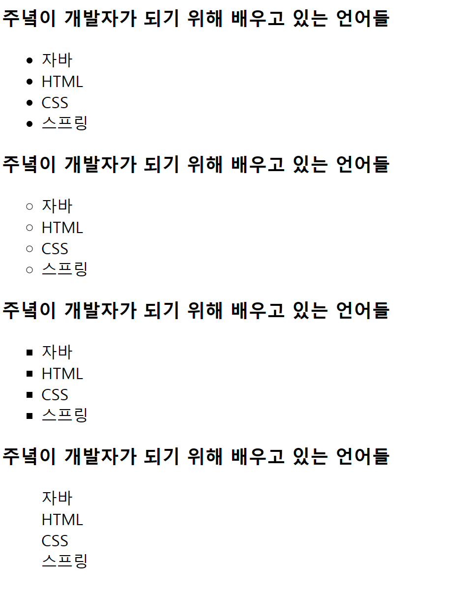 순서가 없는 목록의 스타일에는 4종류가 있습니다.