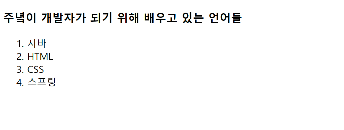 < h3 > 주녘이 개발자가 되기 위해 배우고 있는 언어들 </ h3 >