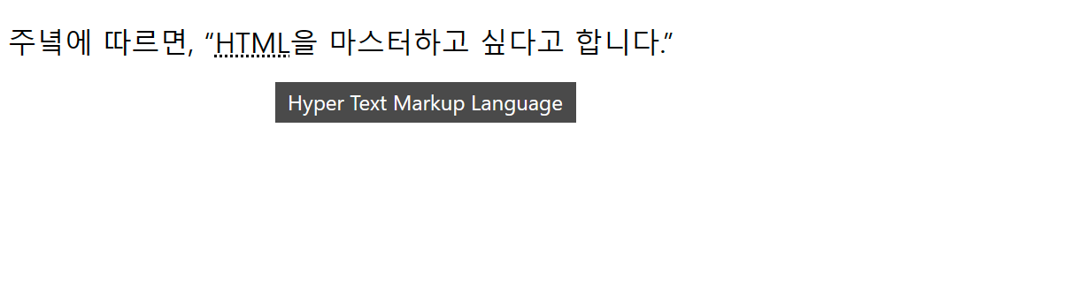 < q >< abbr title = "Hyper Text Markup Language" > HTML </ abbr > 을 마스터하고 싶다고 합니다. </ q >