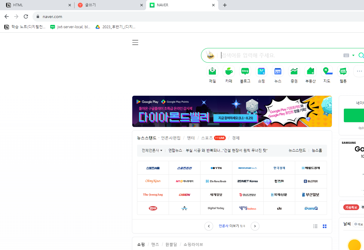 주녘은 개발자가 되기 위해 < ins > 자바, HTML, </ ins > < del > CSS를 </ del > 열심히 공부하였습니다.