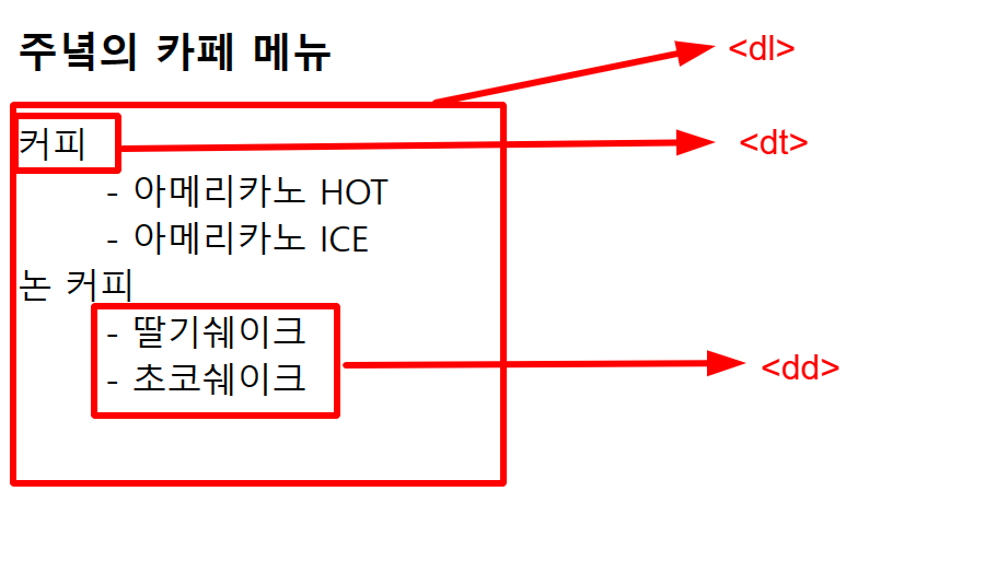 < h3 > 주녘의 카페 메뉴 </ h3 >