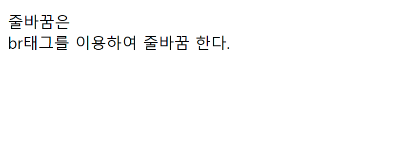 < p > 줄바꿈은 < br > br태그를 이용하여 줄바꿈 한다. </ p >