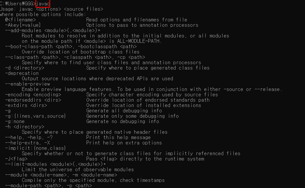 번역하는 과정을 javac 라는 명령어를 통해서 처리가 가능하다.