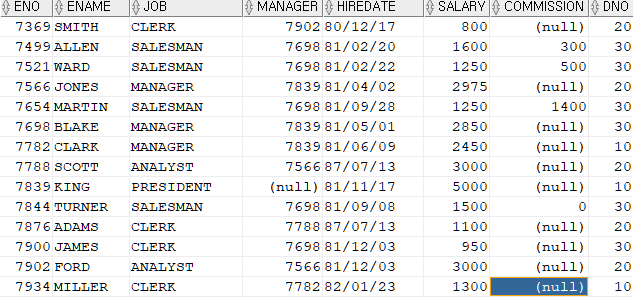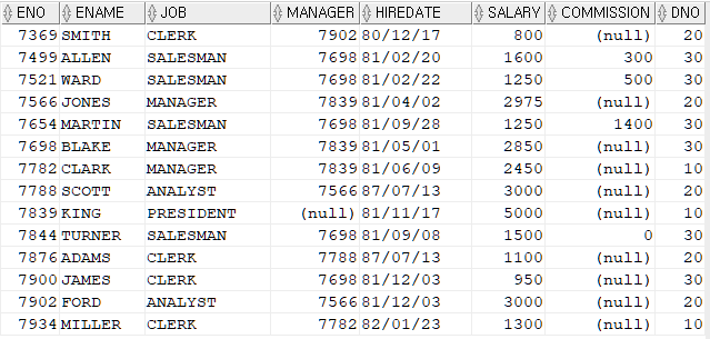 SELECT ENO, ENAME, DNO FROM EMPLOYEE