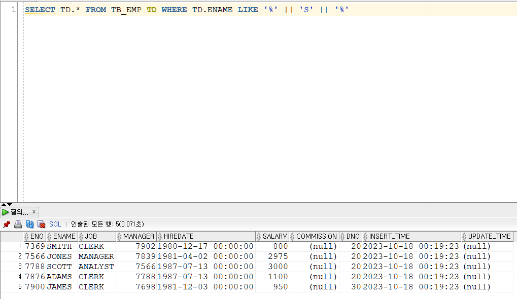 * 부모(부서)-자식(사원) 관계