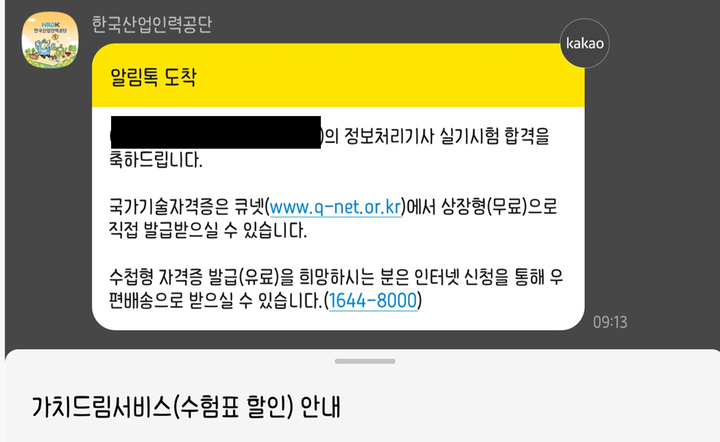 실기 시험을 치고 개발자로 취업하기 위해 회사 면접도 보면서 서울에 있는 개발 회사에 취업하고 몇일 뒤 실기 결과가 나왔다!