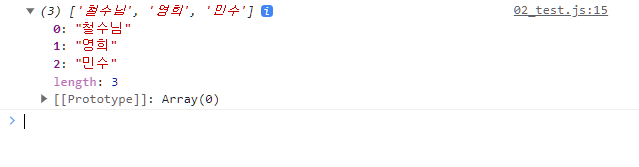 이름이 철수, 영희, 민수 라는 배열이 선언되어있고, 철수 이름 뒤에는 님이라는 존칭이 붙은 새로운 배열을 생성해보자.