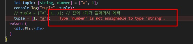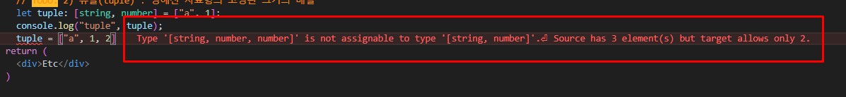 // tuple = ["a", 1, 2]; // 값이 3개가 들어와서 에러