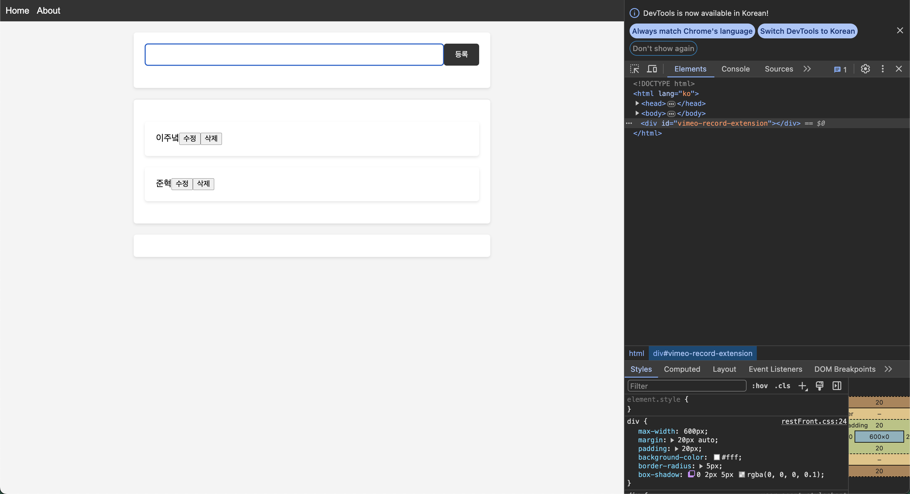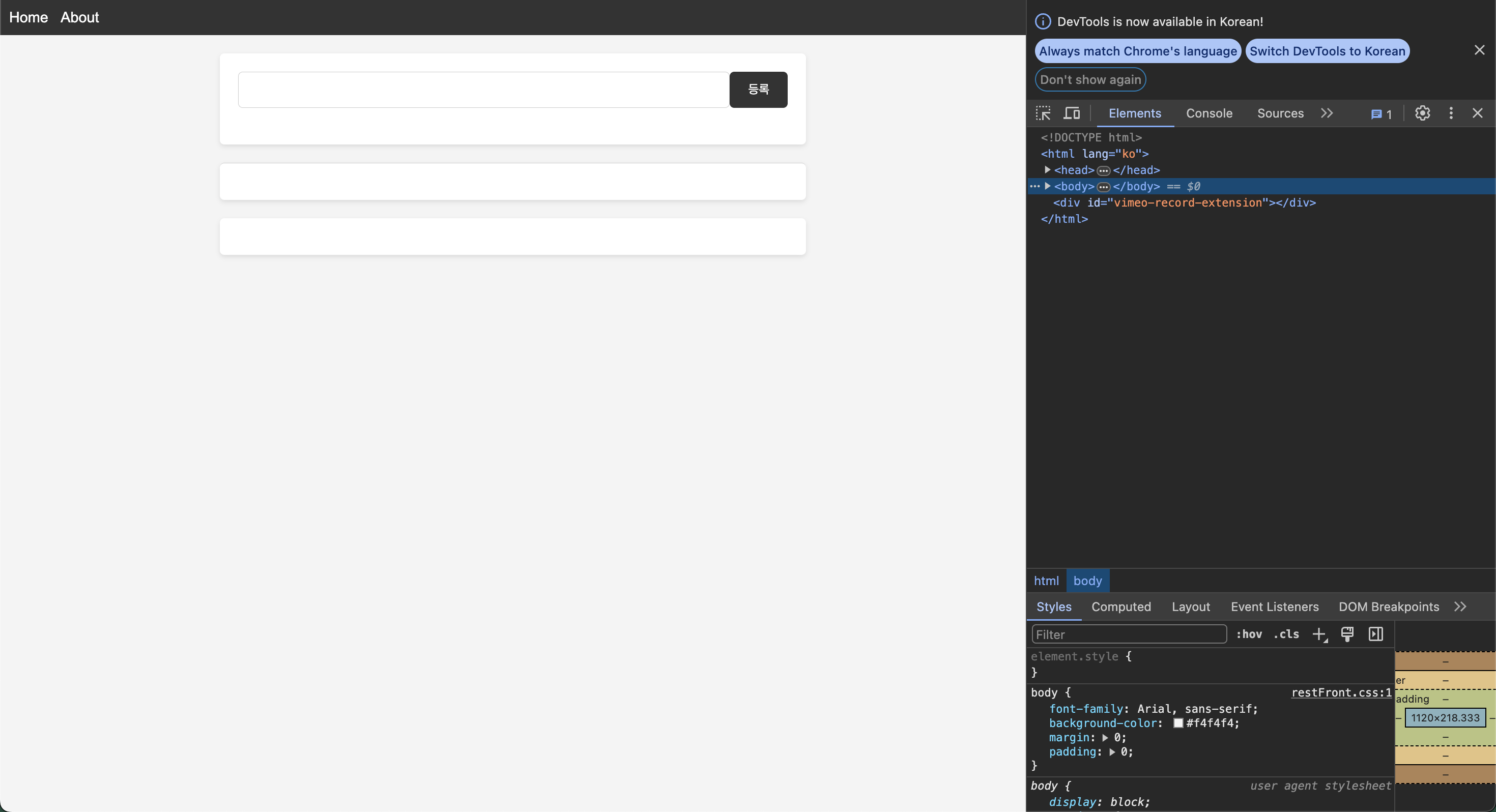 - 주소가 '/' 일 때는 restFront.html을 제공하고, 주소가 '/about' 이면 about.html 파일을 제공합니다.
