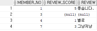 ,NVL2(REVIEW, '리뷰있음', '리뷰없음') AS REVIEW_CHECK
